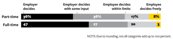 It's hard to overstate how much an employee's control over his schedule, even if it's a small amount of leeway, changes the work experience. Almost three-quarters of adult workers (73 percent) said flexibility is "one of the most important factors they consider" when looking for a new job, according to a survey commissioned last year by the employment firm Mom Corps. (Other surveys put that figure as high as 87 percent.) Nearly half of the respondents in the Mom Corps survey (45 percent) said they would even be willing to relinquish some of their salaries for more flexibility.