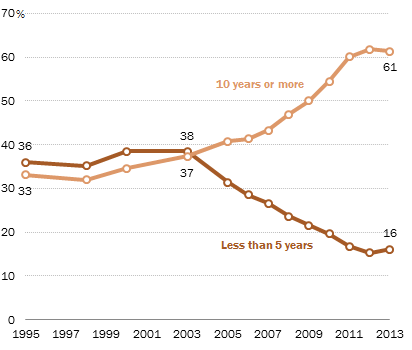One of the largest determining factors for home buying among immigrants is the amount of time that an individual has lived in the country. That makes the prospect of a wave of recently legalized, but longtime residents an interesting one for the housing market. According to data from Pew Research, about 61 percent of undocumented immigrants in the U.S. have been here for 10 years or more. President Obama’s proposed immigration actions, which could provide new legal rights for many undocumented immigrants in the U.S., might have a major impact on the market for homeownership, allowing immigrants who have been in the country for an extended period to purchase a home, without fear of deportation or legal action.
