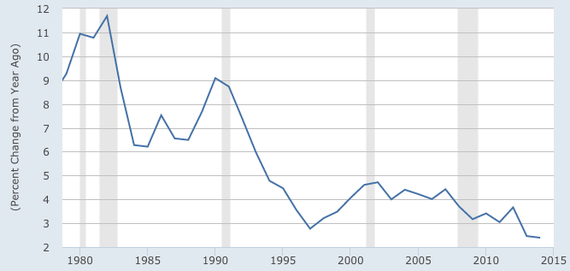 That leaves healthcare's $2 trillion question: What's going on exactly? Just about everybody agrees that the answer is "the recession and ..." followed by a smattering of variables, such as cost control measures in Obamacare, the rise of high-deductible plans, and reforms undertaken by doctors and insurance companies, independently, to curb over-treatment. It's strange to think that the recession, which technically ended in 2009, would still have its fingers around the neck of medical cost growth in 2015. But as you can see if you scroll back up to the second chart in this article, healthcare costs tend to follow the rest of the economy with a bit of a lag; prices were still decelerating years after the 1980s and 1990s recessions were over. There might even be signs that the slowdown is entering a new phase: Healthcare employment ticked up in the first quarter of 2015.