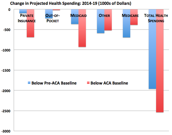 Forecasts of medical spending have undergone round after round of major surgery. Six years ago, the Urban Institute projected that the country would spend $23 trillion between 2014 and 2019. After Obamacare became law, it raised its forecast by half-a-trillion dollars. But the latest projections, published this month, are lighter by $2 trillion and $2.5 trillion, respectively.