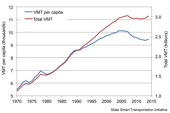 What's more, Millennial money woes aren't the only headwind against the car industry. U.S. vehicle sales peaked at 17.3 million 15 years ago, in 2000, when there were a lot fewer customers. Meanwhile, miles-driven per person has been falling since the middle of the Bush administration. It edged up last year for the first time in a decade. People are buying less and driving less, and these appear to be structural changes.