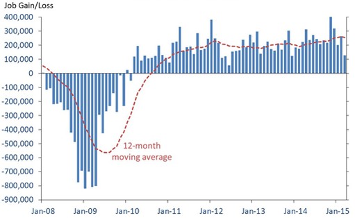 As this chart from the White House shows, things are still way better than they were immediately after the recession, but the straightforwardly upward growth many economists had hoped for after the last few reports isn't quite there:
