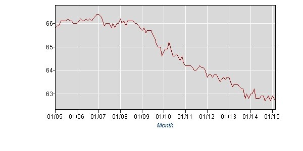 Thursday's news would seem to be a cause for celebration, but on the heels of a weak jobs report in March and stagnant first-quarter growth in the American economy, there's serious cause for skepticism. The joy surrounding the promisingly low number of Americans filing jobless claims should be tempered by the fact that the American labor force is historically small right now. That's not just because of retiring Baby Boomers, but also the lack of prime-age workers in the 25-to-54-year-old set. Economists and pollsters have noted that many of 30 million prime-age workers, in the absence of available high-paying jobs, have stopped looking for work altogether.