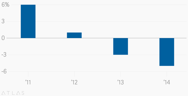 Annual Percentage Change in the Number of New York City Taxi Trips