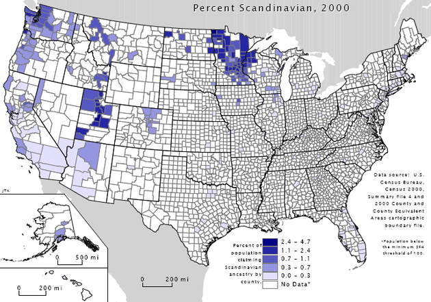 According to the census, 31 percent of Scandinavian-Americans live in the Midwest, though even greater numbers live in western states. The Midwest is, however, home to the largest percentage of Americans whose ancestors were Dutch, another famously lanky people.