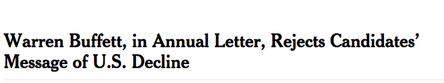 With that, bring on Warren Buffett! Today’s NYT has a story about Buffett’s annual shareholder letter for Berkshire Hathaway. The Times headline conveys the contrast with today’s political rhetoric.