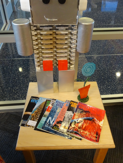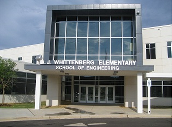 Whittenberg is -- no kidding -- an elementary school of engineering. The mascot of the school (below) is a robot, and the kids are not the “cougars” or the “tigers” but the “engineers.” Academically, the school presents lots of special projects around engineering and also folds engineering skills into traditional academic subjects.