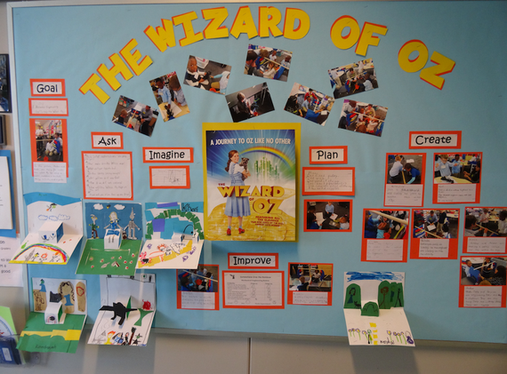 This year, one production is the Wizard of Oz. First graders at Whittenberg study the production in every aspect. Lucky for the school, the productions for the last several years have included a “flying element”, which fits nicely into engineering lessons. This year, the first graders learned about what it takes to get the wicked witch up in the air. They broke into teams to design their own rope and pulley system to get a witch to fly. They walked the Swamp Rabbit Trail to the Center to  learn about how the lighting works, how the orchestra pit operates, how the stages and scenery are set up. The winning design team got to attend a performance at the theater. They all learned the songs in the musical; they read the book; they made their own pop-up books of the story.