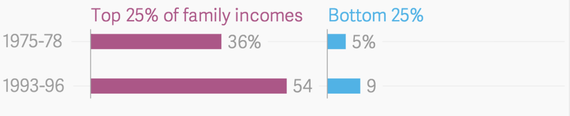 “Relative to 40 years ago, high-income kids are more likely to be surrounded by other high-income kids, low-income kids by other low-income kids,” Greg Duncan, an academic who has studied the interaction of income segregation and equality, said in a speech earlier this year.