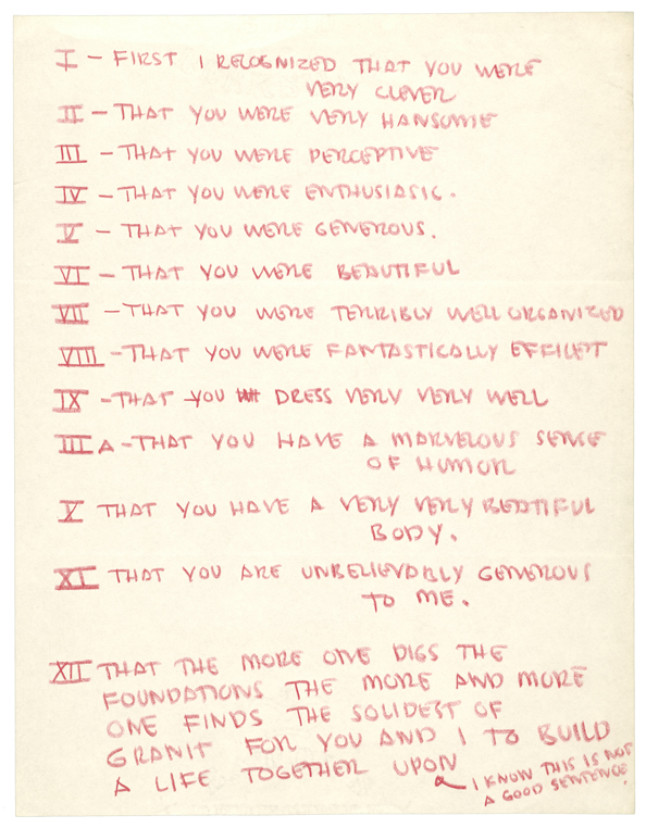 Eero Saarinen's list of Aline Bernstein's good qualities, ca. 1954. Aline and Eero Saarinen papers, 1857-1972.