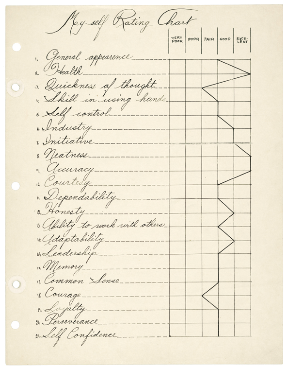 Harry Bertoia's 'My-self Rating Chart' school assignment. Harry Bertoia papers, 1917-1979.
