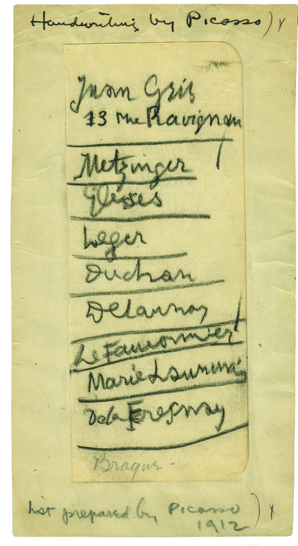 Pablo Picasso's recommendations for the Armory Show for Walt Kuhn, 1912. Walt Kuhn, Kuhn family papers, and Armory Show Records, 1859-1978.