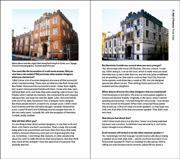 After spending some time in the creative industry, Swedish design duo Hjärta Smärta ("Heart Pain") observed that there weren't nearly enough female design role models at the forefront of our cultural awareness. So they started Hall of Femmes, an online project (alas, in Swedish) highlighting female designers and art directors who have significantly influenced creative culture. In 2009, the pair traveled to New York to interview some of these design icons as the basis for a series of books and soon thereafter they published four of these volumes honoring female creative legends.A few years ago, we traveled to New York to meet up with a few iconic female graphic designers. We wanted to connect with women whose successes we could aspire to. With the book series HoF, we direct attention to these unsung heroines. --Angela and Samira, Hjärta Smärta