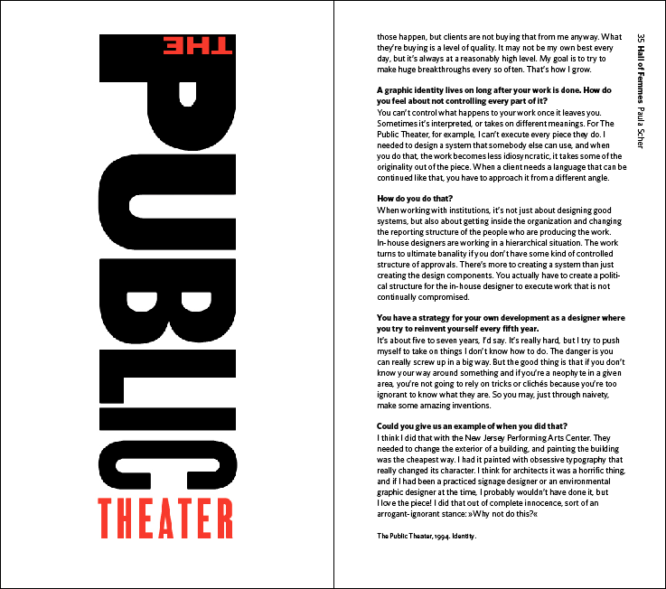 The most recent in the series, Hall of Femmes: Paula Scher, covers one of my personal heroes, whose views on combinatorial creativity capture the founding ethos of Brain Pickings with remarkable eloquence. Scher began her graphic design career as a rebellious record cover art director at both Atlantic and CBS Records in the 1970s, where her hate for the then-ubiquitous Helvetica led her to create some of the most innovative and memorable typography of all time, which helped define the visual voice of New York City. In 1991, she joined iconic design firm Pentagram as a partner. Her stunning typographic maps have become one of the most celebrated feats of creative cartography. Her identity and branding systems have helped shape iconic cultural institutions and brands like Bloomberg, Coca-Cola, the Metropolitan Opera, the MoMA, and Citi. In 2001, Scher earned the coveted AIGA Medal for her contributions to graphic design. In 2006, she was awarded the Type Directors Club Medal. At 63, Scher remains a principal at Pentagram and teaches at New York's School of Visual Arts.