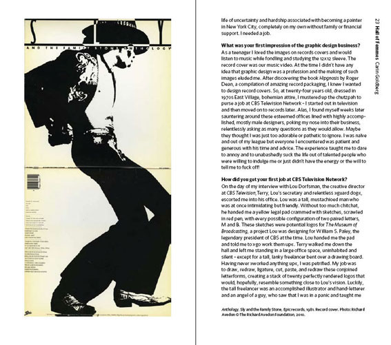 Hall of Femmes: Carin Goldberg highlights the legacy of postmodernist book designer who earned the prestigious AIGA Gold Medal for lifetime achievement in 2009. Her career began in the 1970s as a designer at CBS Television and CBS Records, an era that expected you to be, as Goldberg puts it, "a cool, irreverent, experimental, hungry, talented smart-ass". In the 1980s, she founded her own firm, Carin Goldberg Design, which she heads to this day. Over the past three decades, Goldberg has designed more than 1,000 books for every iconic publishing house and has worked with legends like Madonna and Steve Reich, as well as Brain Pickings favorites Kurt Vonnegut and Susan Sontag.