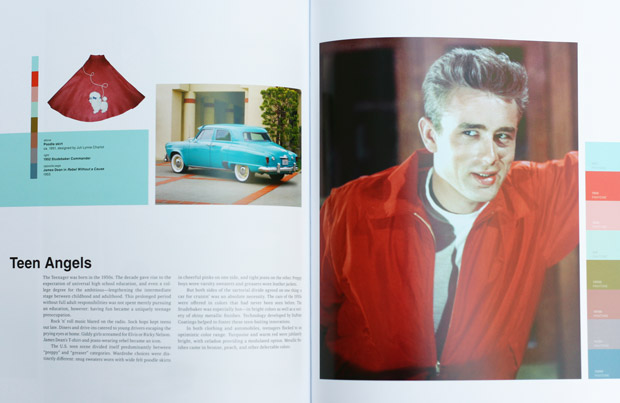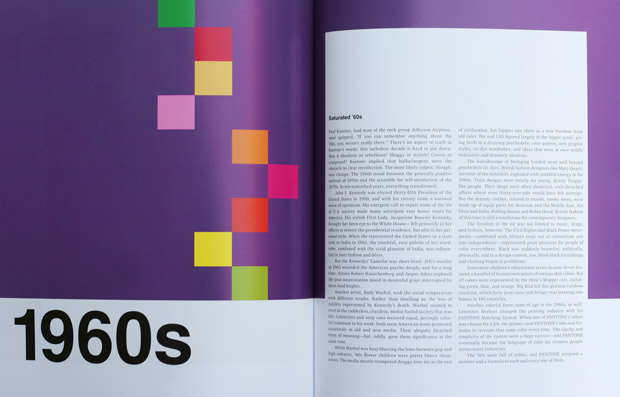 From the glamorous Silver (PANTONE 14-5002) and Jet Black (PANTONE 19-0303) of the "roaring twenties" Jazz Age to the rosy optimism of the 1950s to the exaggerated flair of the 1980s economic boom and social liberation, each decade comes with a detailed color palette contextualized in an essayistic history of the era's sociocultural trends and milestones.