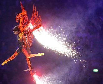 A blur of Annie Lennox, and Pink Floyd, and the Bee Gees followed. (Hey, aren't the Bee Gees Australian? Nevermind.) Russell Brand belted out "I Am the Walrus," as Bob Costas helpfully noted, "This part is a psychedelic celebration of individuality and freespiritedness." Taio Cruz, Jessie J, and Tinie Tempah in a white Rolls-Royce performed their current hits. London Mayor Boris Johnson grooved to the Spice Girls as they sang atop black London cabs. Freddie Mercury appeared on screen in a clip from a famous 1985 Queen concert at Wembley Stadium. The ceremonial handoff of the Games to Rio for 2016—next theme: Live Your Passion—trotted out the expected visual tropes of Brazilian culture (samba, beauty queens, carnival dancers, soccer star Pelé) in a manner that paralleled everything we've seen at this Olympics' opening and closing ceremonies, attempting to telegraph the essential-if-clichéd components of a country's culture in a few moments.