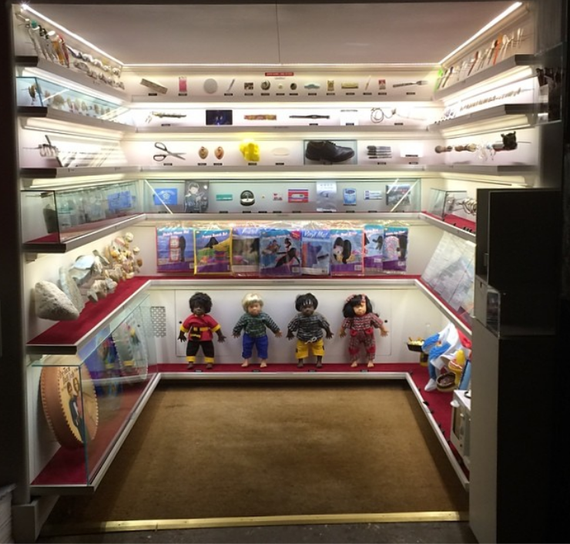 The curators boast of 20 new exhibits with wildly disparate themes: broad topics ranging from North Korea to mental illness, specific genres from Matisse’s garden moss to an all-in-one toaster-oven-grill-coffee-maker, from historical dirt to New Dehli mosquitos, from Saddam Hussein’s watches and knife to plastic spoons and “censored” Saudi Arabian pool toys—all neatly labeled and packed on narrow shelves. Each object is contributed by a quirky collector. For example, Santiago Stelley offered up the aforementioned taboo pool toys, Ken Brecher assembled water and dirt, and David Guttenfelder has a cache of North Korean souvenirs. Other collectors include RadioLab, industrial designer Tucker Viemeister, and Alex Kalman’s mom, artist and illustrator Maira Kalman.
