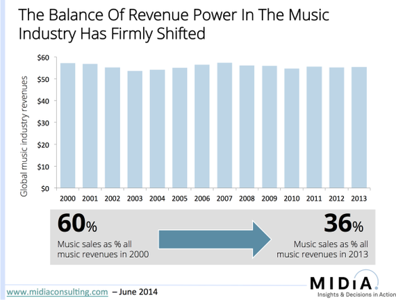 First, live music looms larger in American music than it has in some time. A much greater share of music revenue comes from live performances than it has for years, though that shift is probably in large part about the collapse of the recorded music industry: