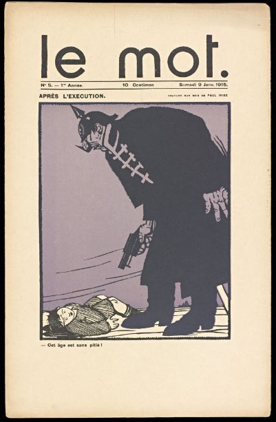 Yet not all the artists were dissenters. For those who served in combat roles directly there was little time, opportunity, or access to materials to produce artworks, Hughes explains. And for those who could not serve in combat—often due to age or health—designing visual warfare was their way of contributing. That was the case with one of France’s leading avant-garde artists, Jean Cocteau, who both volunteered to drive an ambulance and published the anti-German Le Mot with the illustrator Paul Iribe. According to Hughes, Le Mot mobilized a French modernist aesthetic that was overtly propagandistic.