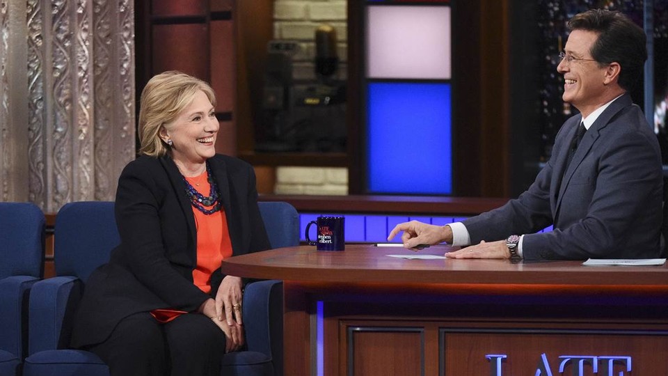 Which is probably why, on her appearance on The Late Show With Stephen Colbert on Tuesday, Hillary Clinton took full advantage of television watching’s lubricative banality. Deep into her humanization tour (“Fun is something I often have when amongst a group of people”), Clinton confided that she’d celebrated her birthday over the weekend by sleeping in, hanging out with her extremely humanizing baby granddaughter, Charlotte, and otherwise doing “as little as I could get away with.” And on the big day itself—Monday—she told Colbert, “I just sort of hung around. Bill and I just watched bad TV ... a little binge-watching, here and there.” Clinton went on to list some of her favorite shows for that watching: House of Cards, Madam Secretary, and The Good Wife.