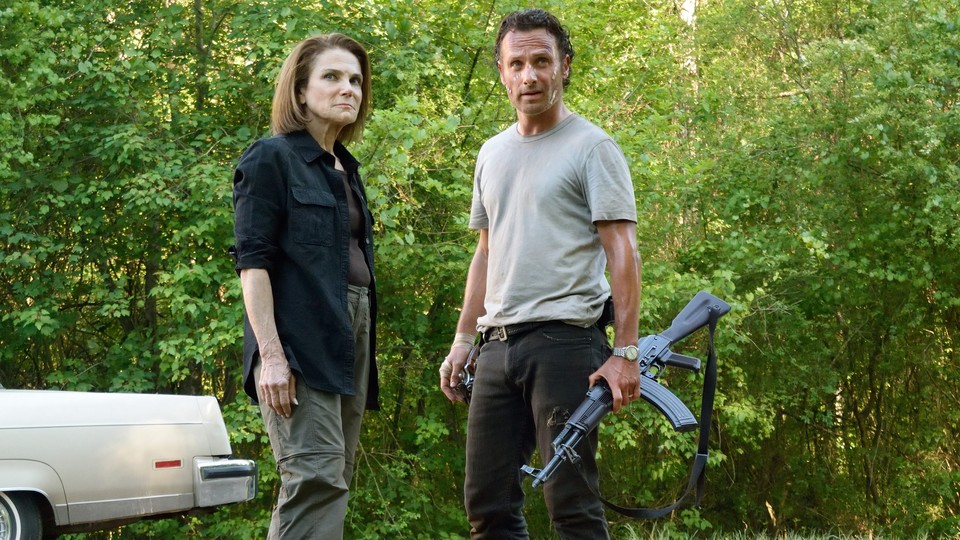 With all this going on it’s easy to forget a big thrill of the season-five finale: the return of Rick’s old friend Morgan (Lennie James), who almost lost his mind over his son’s death, and who’s since morphed into a humane, stick-wielding model of calm and competence. With the split narrative and time spent dawdling on minor characters, the moments of reconnection between him and Rick never feel as meaningful or cathartic as I wanted. Instead their dialogue boils down to some variation of “I’m a killer, Rick,” and “That’s not who you are” and “I know you, Morgan”—weighty, grumbled pronouncements recycled from the weighty, grumbled pronouncements the show has abused from its start.