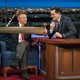 Last week, for the second week in a row, The Late Show beat NBC’s Tonight Show (hosted by Jimmy Fallon) in the ratings, a rarity for The Late Show, even in the days when David Letterman was its host. Though Fallon remains the leader in the crucial “demo,” the 18-49 age bracket that advertisers prize, the ratings crown is no small victory, especially since CBS is a network that has long pitched itself at older viewers. Fallon’s Tonight Show remains resolutely uninterested in politics, discussing current events in only the most light-hearted of ways, and the blowback from its host’s fawning interview of Trump last September hasn’t fully evaporated yet.