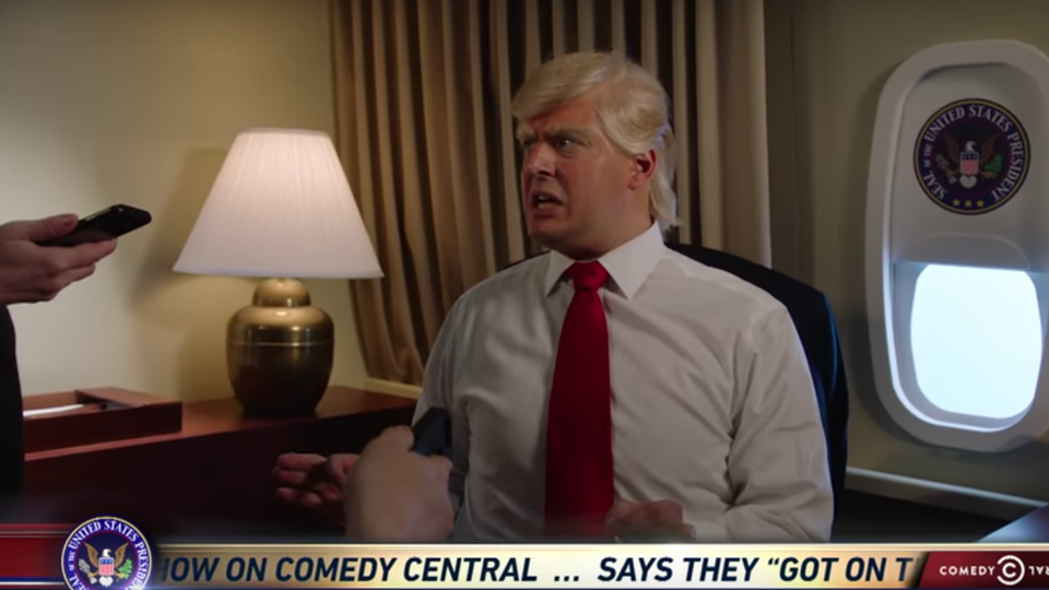 “Just like a certain chief executive in Washington,” a Comedy Central press release puts it, “The President Show gleefully tosses out the rulebook of its predecessors.” But it also comes firmly in the tradition of other recent efforts at satire-via-impersonation: The Colbert Report, with its take on O’Reilly and Hannity and their ilk, and Saturday Night Live’s Tina Fey, with her finger-gunnin’ Sarah Palin, and Sean “Spicey” Spicer, played to perfection by Melissa McCarthy, and Larry David’s crotchety Bernie Sanders, and, of course, the show’s preening, Alec Baldwinized version of Trump himself. The President Show, it seems, will be turning a truism of all those parodies—the notion that comedy, when it taps into some deeper truth about a politician, can shape that figure’s public image—into its own, dedicated TV show. And it will be taking the Trump presidency, with all its reality-show underpinnings and breezy deceptions, to its logical, and also deeply illogical, conclusion: Trump as a post-modern hall of mirrors, as his own alternative fact.