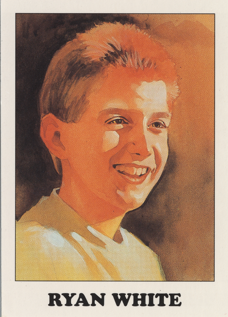 One of those personalities depicted is Ryan White, a young man with hemophilia. Born in Kokomo, Indiana, in 1971, White caught HIV through contaminated blood products. He was diagnosed with AIDS in 1985. He became a vocal and visible symbol of AIDS. Through his illness he became friends with Elton John and Michael Jackson, among others. He died of AIDS in 1990. The Ryan White Comprehensive AIDS Resources Emergency (CARE) Act of 1990 was named for him.