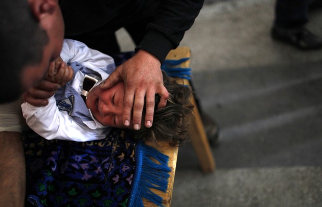 A Bulgarian boy reacts as he receives local anesthesia prior to his circumcision in the village of Draginovo in the Rhodope mountains of Bulgaria on May 4, 2014. Some 100 Bulgarian Muslim boys and their relatives took part on Sunday in a mass circumcision ceremony. (Pierre Marsaut / Reuters)