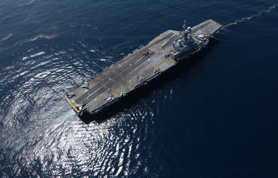 Read moreAn aerial view of the French aircraft carrier Charles De Gaulle, seen in this photo released on March 20, 2011 by French Defense communication and audiovisual production agency, after leaving the naval base of Toulon March on 20, 2011. The carrier, carrying a crew of around 1,800 and some 20 aircraft, was accompanied by an attack submarine, several frigates and a refueling ship defense officials said. #