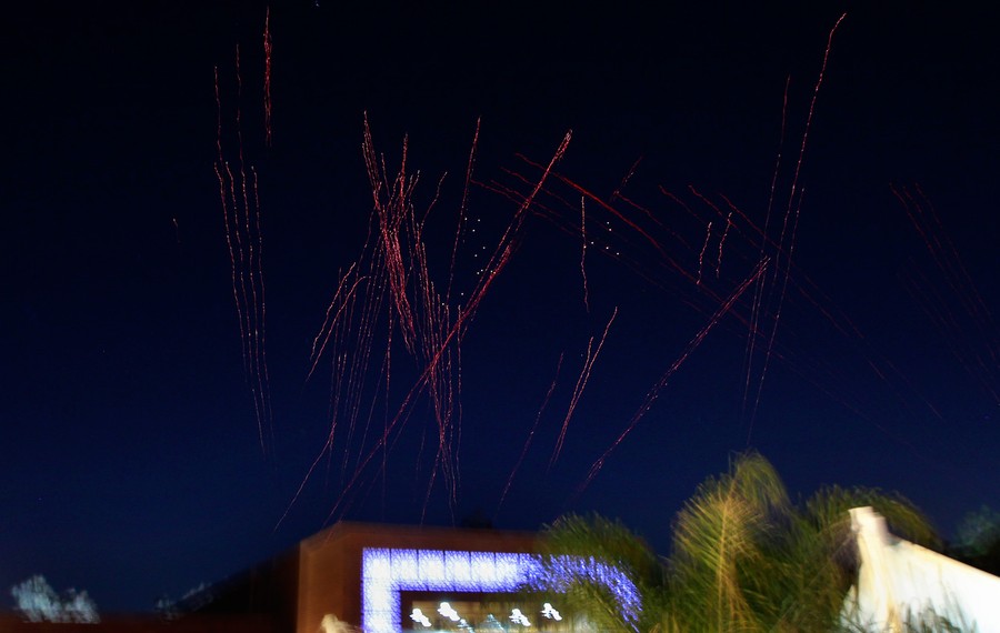 Read moreTracer fire is seen in the sky from anti-aircraft rounds fired above the hotel where foreign media and government officials are staying, in Tripoli, Libya, as explosions rocked the city Sunday March 20, 2011. #