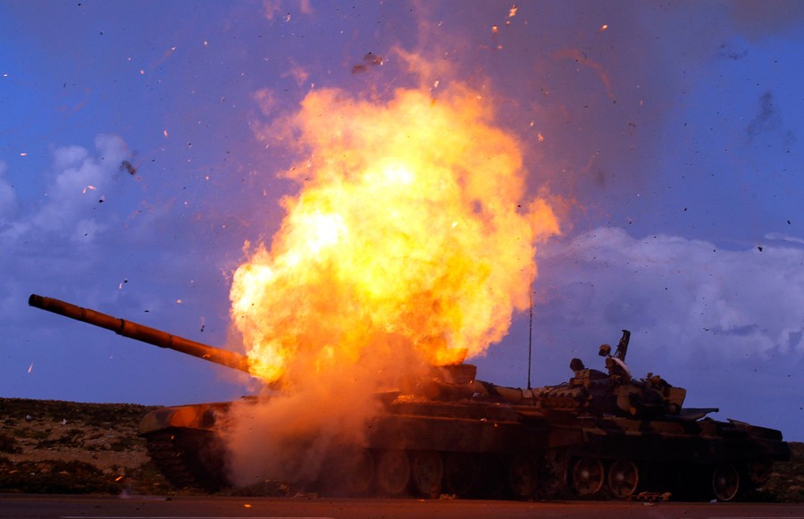 Read moreA tank belonging to forces loyal to Libyan leader Muammar Qaddafi explodes after an air strike by coalition forces, along a road between Benghazi and Ajdabiyah March 20, 2011. #