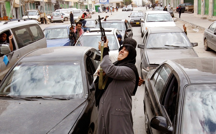 Read moreA female rebel fighter supporter shoots an AK-47 rifle as she reacts to the news of the withdrawal of Libyan leader Muammar Qaddafi's forces from Benghazi March 19, 2011. A rebel spokesman said on Saturday anti-government troops had driven out forces loyal to Muammar Qaddafi who had entered the eastern city of Benghazi. #