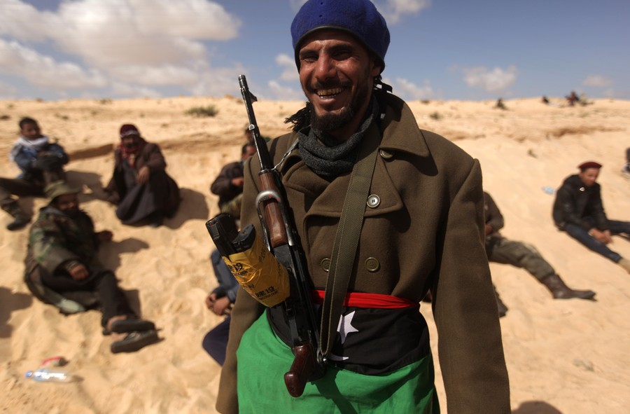 Read moreA Libyan rebel fighter smiles as he gathers with comrades prior to a failed attempt to take the town of Ajdabiya from Muammar Qaddafi's forces on March 21, 2011 as news reports said Libyan government forces pulled back 100 kilometers (60 miles) from rebel-held Benghazi but showed they still had plenty of fight as they beat off an insurgent advance. The forces loyal to Libyan leader Muammar Qaddafi retreated to the key town of Ajdabiya, south of the city of Benghazi, after Western-led air strikes destroyed much of their armor, leaving dozens of wrecked tanks along the road. #