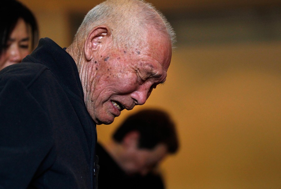 Read moreA man expresses his feelings during a memorial service for the victims of the March 11 earthquake and tsunami at Flora Memorial Hall in Soma, Fukushima Prefecture, northeastern Japan, on Thursday, April 28, 2011. Buddhist priests in black and gold robes chanted and rang bells Thursday to mark the 49th day since Japan's massive tsunami, when the dead are believed to end their restless wandering through the devastated coastline. #