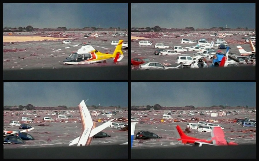 Read moreThis combination photo shows a sequence of images (left to right, top to bottom) of the March 11 earthquake-triggered tsunami sweeping away aircraft and vehicles as it hit Sendai airport in northern Japan, in still images taken from video footage from the Japanese Coast Guard released April 28, 2011. #