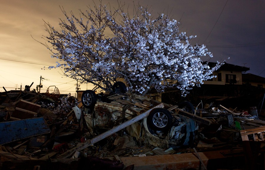 Two months ago this week, on March 11, the 9.0-magnitude earthquake and tsunami struck northeastern Japan. As of today, nearly 15,000 deaths have been confirmed, and more than 10,000 remain listed as missing. In some coastal communities, where the ground has sunk lower than the high tide mark, residents are still adjusting to twice-daily flooding. Many thousands still reside in temporary shelters because their homes were either destroyed or lie within the exclusion zone around the damaged Fukushima Dai-ichi nuclear power plant. Now that tourism season has arrived, Japan -- especially Fukushima prefecture -- is finding itself hit by yet another disaster: visits to the country have dropped by 50 percent. Collected below are images from the tsunami-affected areas of Japan over the past several weeks.
