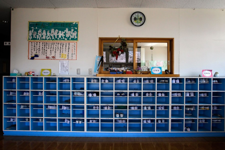 Read moreShoes are left in the dressing room of a kindergarten in the deserted town of Futaba, inside the 20-kilometer (12-mile) evacuation zone, in Fukushima Prefecture, Japan, on Thursday, April 21, 2011. #