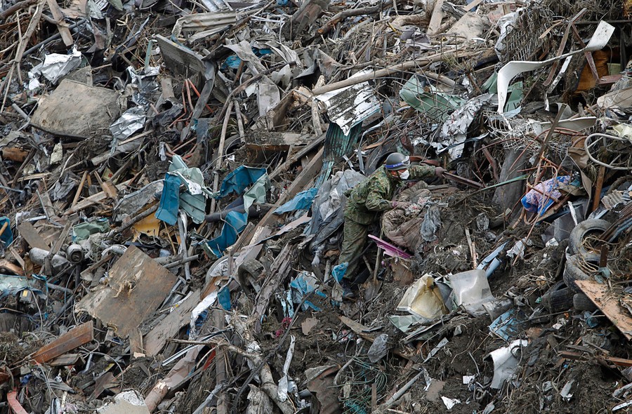 Read moreA member of the Japan Self-Defense Force searches for victims at an area devastated by the March 11 earthquake and tsunami in Kamaishi, Iwate prefecture, on April 20, 2011. #