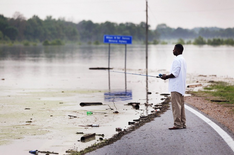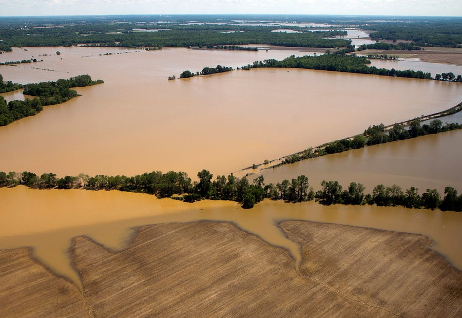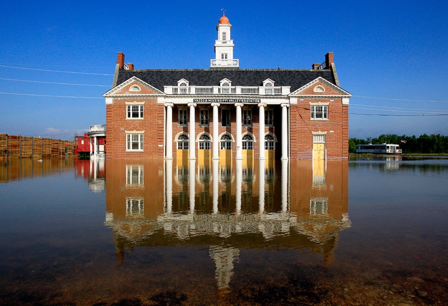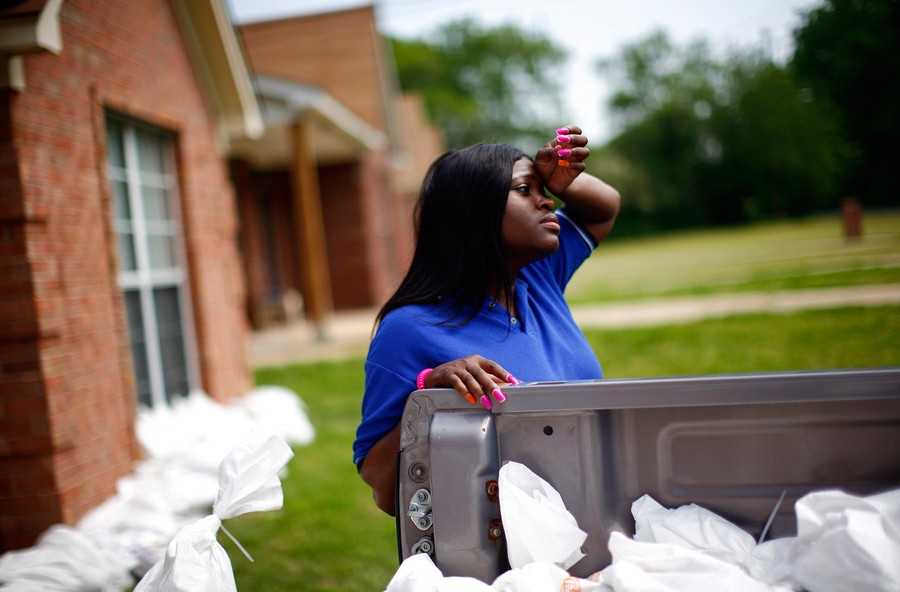 The Mississippi River crested in Memphis at nearly 48 feet yesterday -- not quite surpassing its all-time record set in 1937, but still soaking low-lying areas with enough water to require a massive cleanup. The upper Mississippi basin has been experiencing near-record flooding for weeks now. Across Missouri, Illinois, Kentucky, and Arkansas, heavy rains have left the ground saturated and rivers swollen. At the same time as recovery begins in Memphis, residents of Louisiana are working to prepare themselves for the massive amounts of water heading their way -- experts estimate that as many as three million acres may become submerged in the next few days. Collected below are images of the recent floods and those who are coping with this disaster.