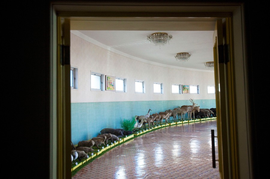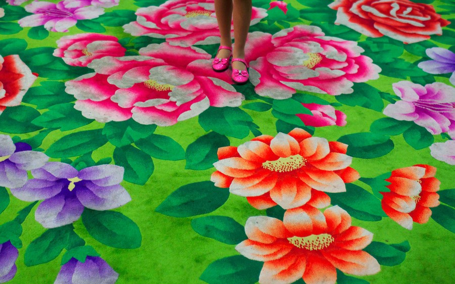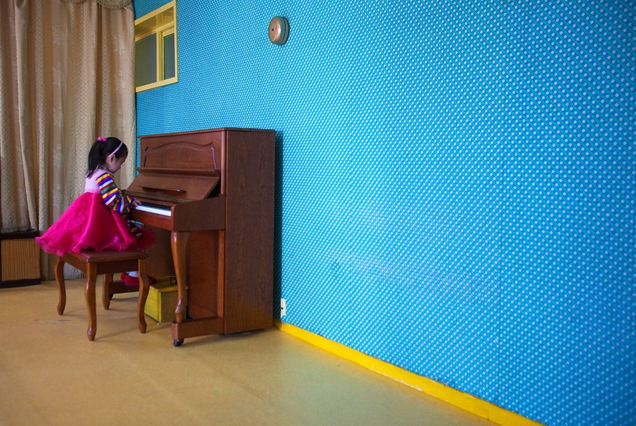 Read moreA young girl stands on floral-print carpet inside the Pyongyang Children's Palace in Pyongyang, North Korea, on April 14, 2011. The large facility teaches performance arts, fine arts, and sports as extracurricular classes to students in Pyongyang. #