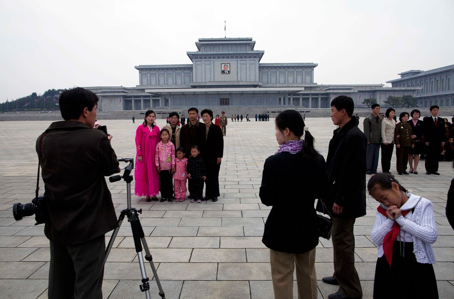 Read moreFamilies have their photograph taken in front of the Kumsusan Memorial Palace in Pyongyang, North Korea, on April 15, 2011. The palace, which was the official residence of Kim Il Sung until his death in 1994, is now a mausoleum where his embalmed body lies in state. #