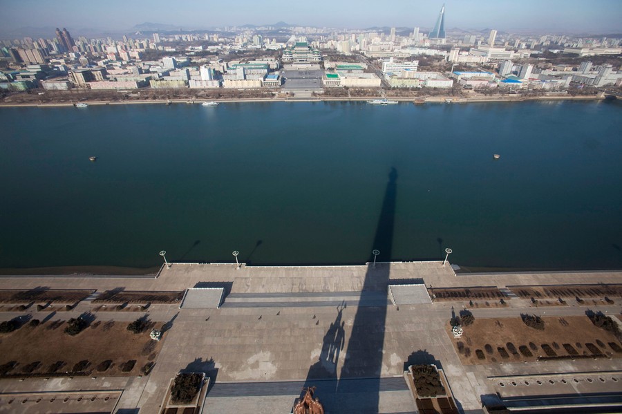 Read moreA shadow of the 170-meter (560-foot) Juche Tower is cast over the Taedong River in Pyongyang, North Korea, on March 9, 2011. The tall structure at top right is the Ryugyong Hotel, its exterior only recently completed, despite construction starting in 1987. #