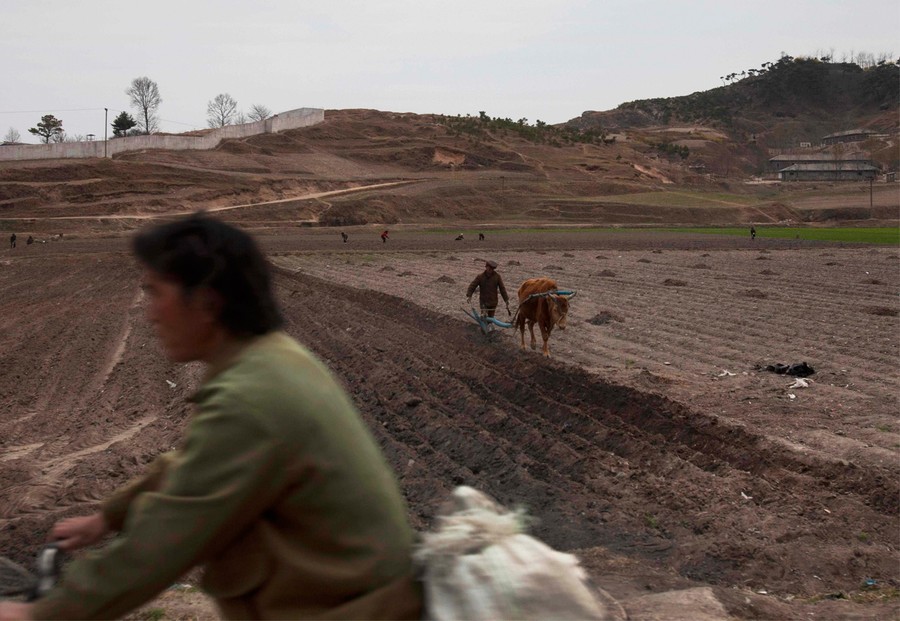 Read moreA person on a bicycle rides by as a man plows a field outside of Kaesong, North Korea, on April 17, 2011. North Korea's perennial food shortage has reached a crisis point in 2011, aid workers say, because of torrential rains, the coldest winter in 60 years and rising food prices. #