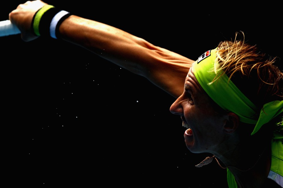 The 100th edition of the Australian Open tennis tournament is currently underway in Melbourne. Players from all over the world have been competing in the heat of the Australian summer, hoping for a win -- this year's singles champions will take home $2.4 million dollars (U.S.). Matches are progressing today into the semifinals, with the final matches to be played on January 29. Collected here are some colorful glimpses of the 2012 Australian Open.