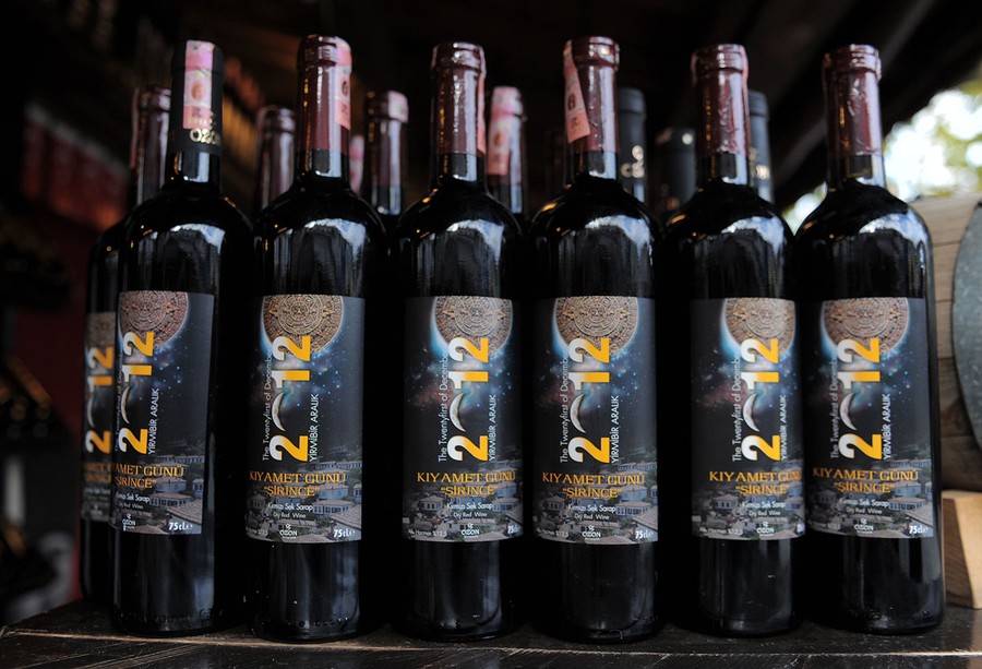 Read moreBottles of wine with labels reading "the end of the world", on sale in Sirince, a village in western Turkey, on December 20, 2012. Believers in the Mayan calendar's doomsday prediction for December 21, 2012, are flocking to Sirince, a small village in Turkey's Izmir province, which some believe is the only safe haven from the impending apocalypse because the Virgin Mary is said to have risen to heaven from there. #