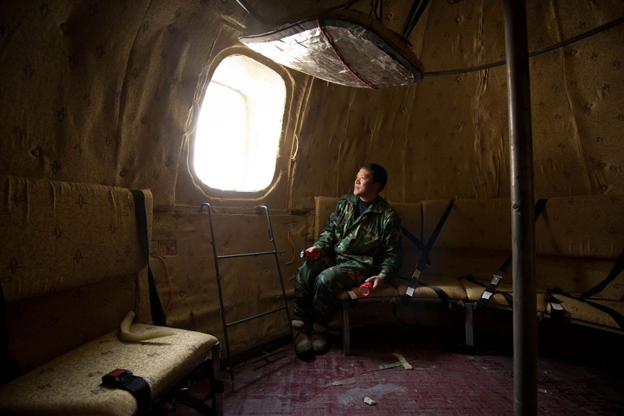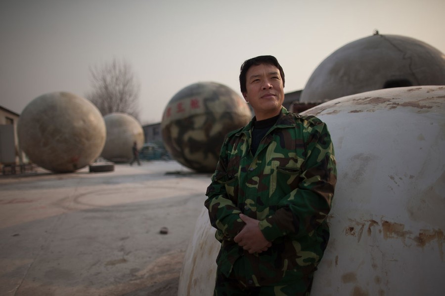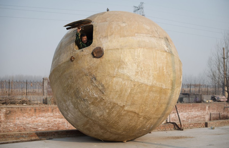Read moreLiu Qiyuan looking out from one of his survival pods, in Qiantun, Hebei province, on December 11, 2012. Liu has built seven pods which are able to float on water, some of which have their own propulsion. The airtight spheres with varying interiors contain oxygen tanks and seat belts with space for around 14 people, and are designed to remain upright when in water. #