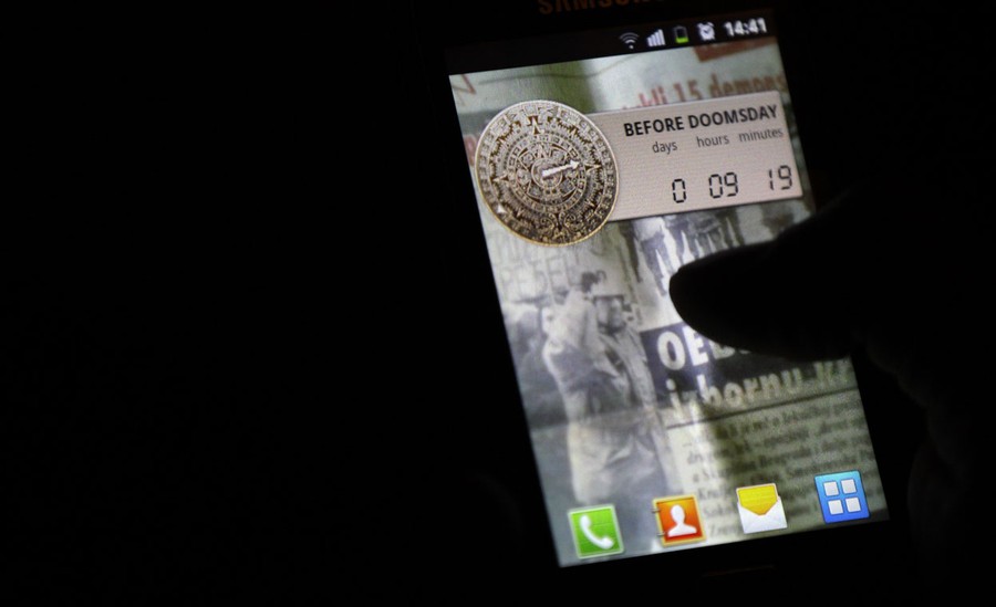 Read moreA man shows the "Before Doomsday" application on his smart phone, in a Belgrade cafe, on December 20, 2012. From Russia to California, thousands are preparing for the fateful day, when many believe a 5,125-year cycle known as the Long Count in the Mayan calendar supposedly comes to an end. #