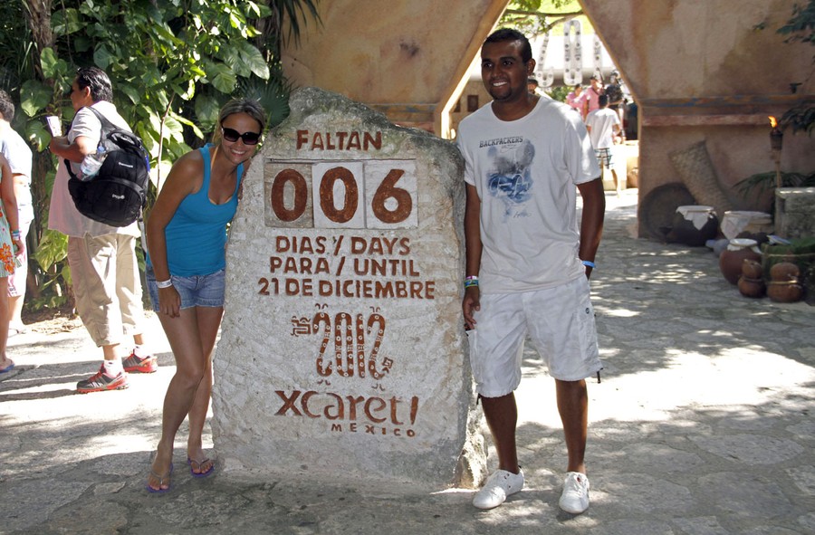 Read moreTourists have their picture taken next to a slab of stone counting down the days until December 21, 2012 at the Xcaret theme park in Playa del Carmen, Mexico, on December 15, 2012. Amid a worldwide frenzy of advertisers and new-agers preparing for a Maya apocalypse, one group is approaching December 21 with calm and equanimity: the people whose ancestors supposedly made the prediction in the first place. #